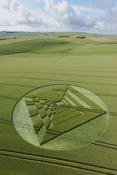 2007년 6월 28일, 윌트셔의 에이브버리 (Avebury) 근처의 웨스트 케넷 롱 배로우 (West Kennett Long Barrow)에서 발견된 크롭서클 (미스터리 서클) 입니다.